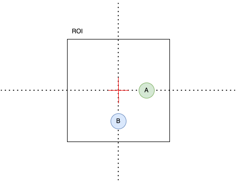 Pour positionner le point A dans la réalité, nous devons déplacer le centre de l'image vers la droite. De manière similaire, pour atteindre le point B, le centre doit être déplacé vers le bas.